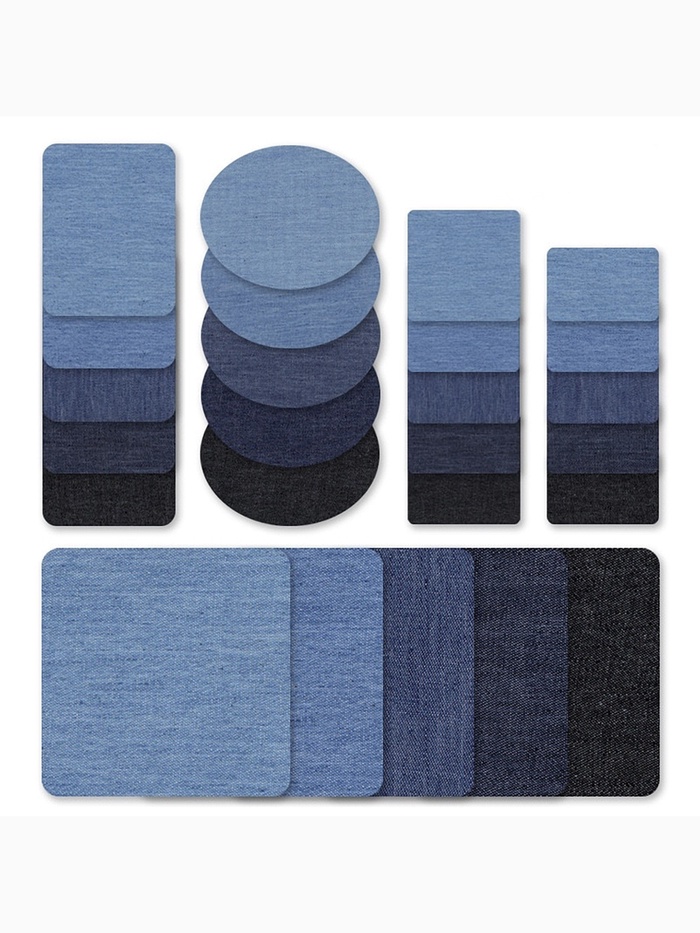 - Удобная овальная форма 7×5 см: Повторяет естественные линии износа на коленях и локтях. В наборе — синие, голубые и чёрные заплатки для точного подбора оттенка.