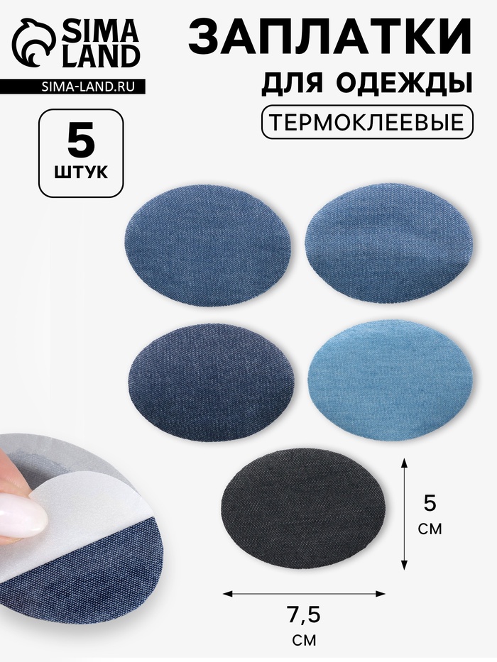 Набор заплаток для одежды, овальные, термоклеевые, 7×5 см, 5 шт., синий — Характеристики
