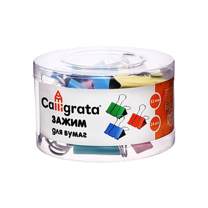 Набор зажимов для бумаг, 32 мм, цветные, 24 штуки, 4 цвета, МИКС — Характеристики