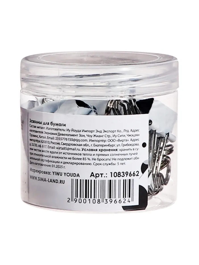 Откройте для себя функциональность с набором зажимов для бумаг. Этот удобный комплект из 25 белых зажимов, каждый размером 19 мм, аккуратно упакован в пластиковую трубу, делая организацию ваших документов простой и стильной задачей.