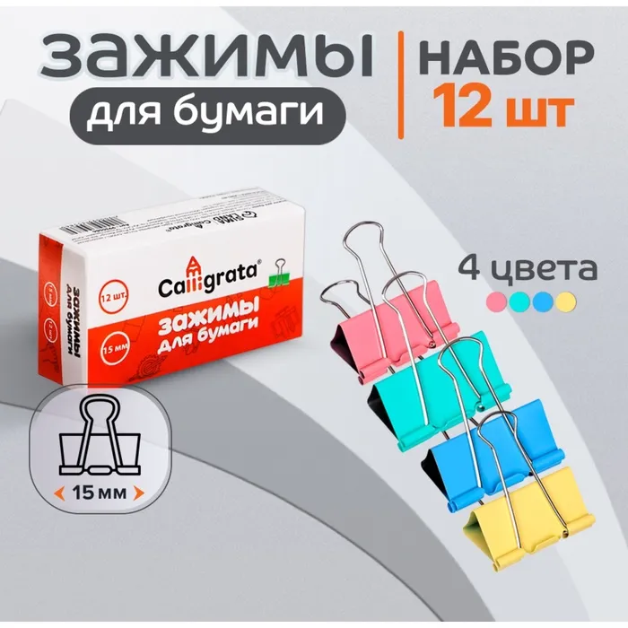 Металлические зажимы для бумаг Calligrata используются для скрепления документов, фотографий без использования степлеров и скрепок, для временной фиксации листов, не повреждая их и надежно удерживая стопку бумаг. Канцелярские зажимы 15 мм из металла. Они являются необходимой офисной принадлежностью, используются в школах и дома