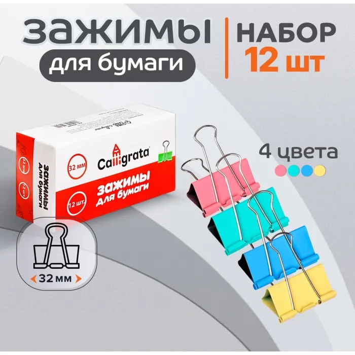Металлические зажимы для бумаг Calligrata используются для скрепления документов, фотографий без использования степлеров и скрепок, для временной фиксации листов, не повреждая их и надежно удерживая стопку бумаг. Канцелярские зажимы 32 мм из металла. Они являются необходимой офисной принадлежностью, используются в школах и дома