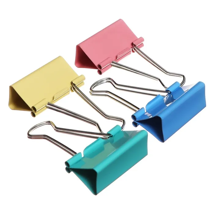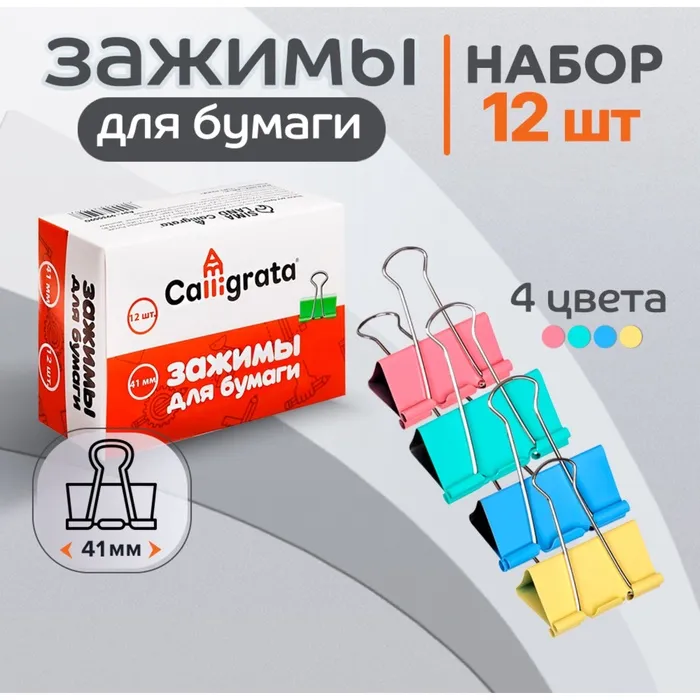 Набор зажимов для бумаг пастель 41 мм, 12 штук, 4 цвета, в картонной коробке — Характеристики