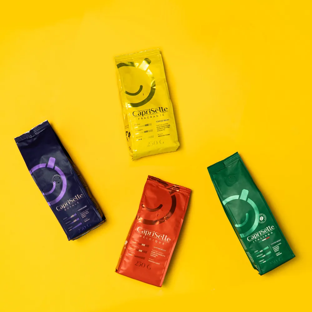 Набор зернового кофе Caprisette 4 x 250 г — это не просто кофе, это целая история, которую вы можете рассказать каждому глотку. Подарите себе и своим близким наслаждение настоящим качественным кофе, который сделает каждый момент особенным. Закажите набор прямо сейчас и откройте для себя мир настоящего кофейного удовольствия!