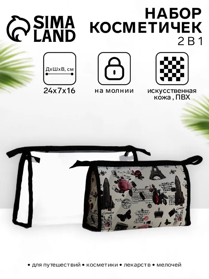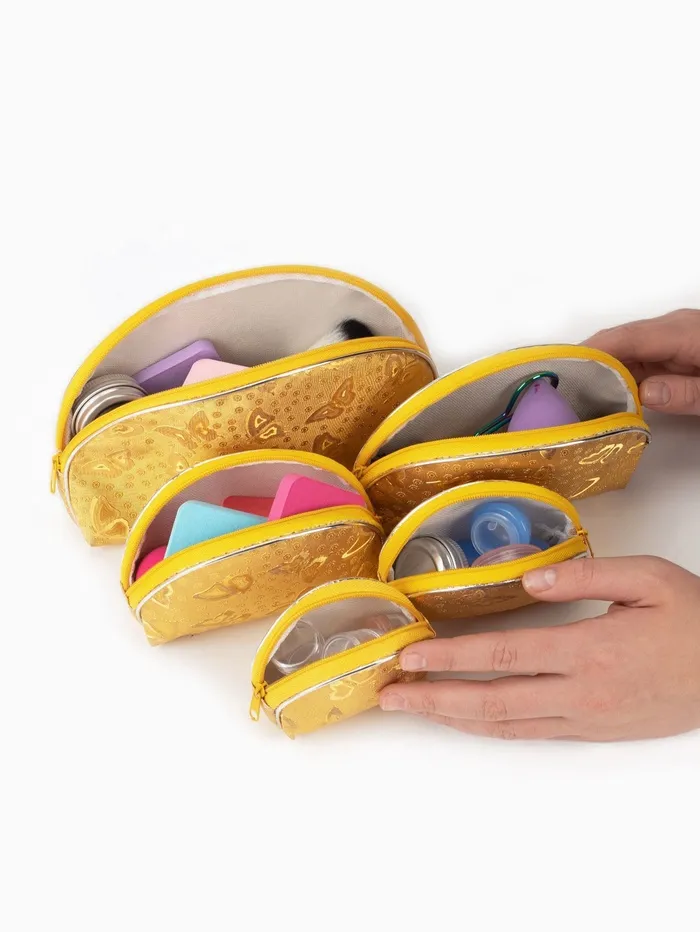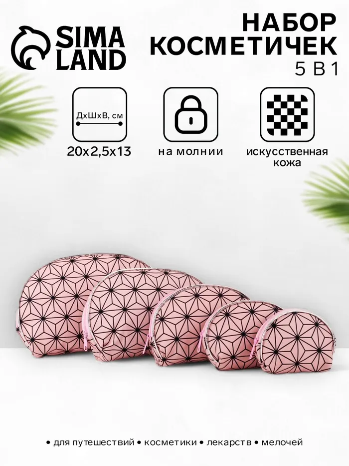 Набор женских косметичек 5 в 1 на молниях, с принтом, золотистый — Характеристики