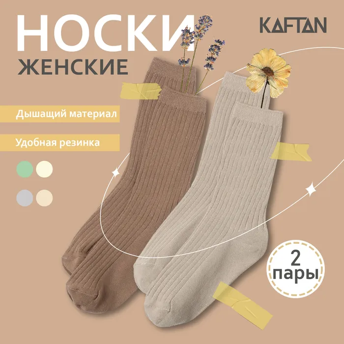 Набор женских носков KAFTAN Base, 2 пары, размер 36-39 (23-25 см) молочн/беж — Характеристики