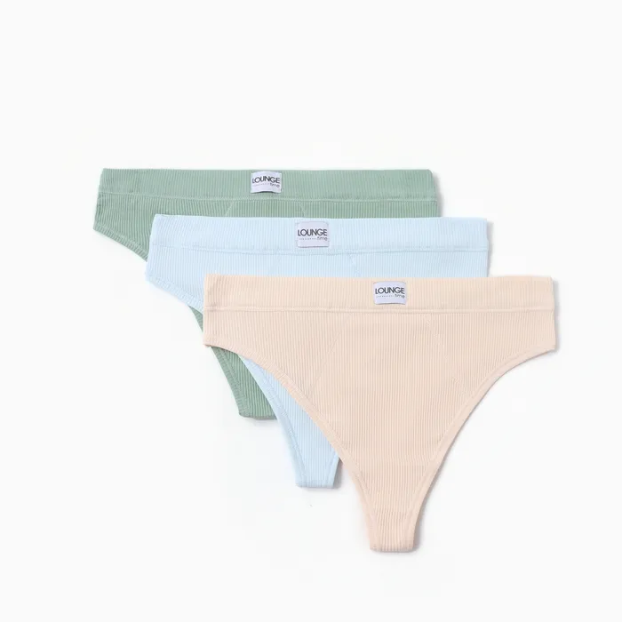 Набор женских трусов бразилиана (3 шт.), цвет зеленый/голубой/бежевый, размер 46 (M) — Характеристики