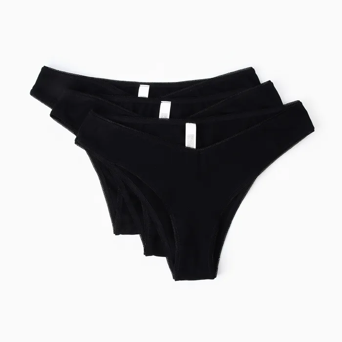 Набор женских трусов бразилиана (3шт), цвет черный, размер 46 (M)