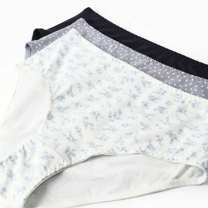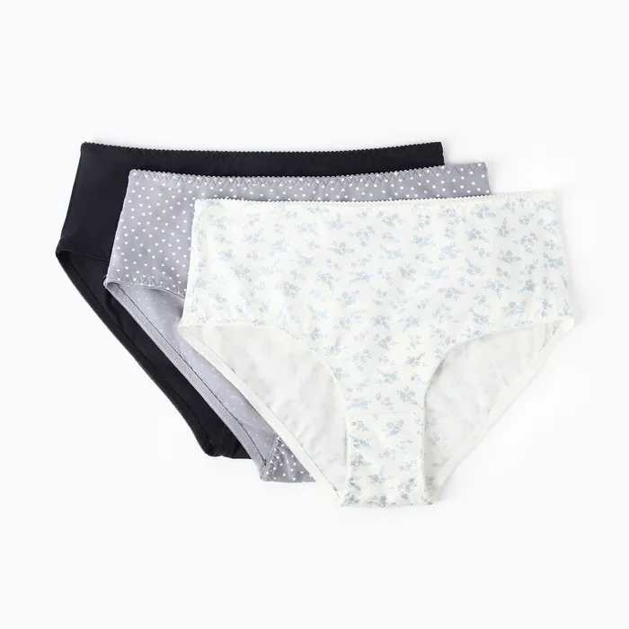 Набор женских трусов слипы (3шт), цвет цветочки на молочном, размер 50 (XL) — Характеристики