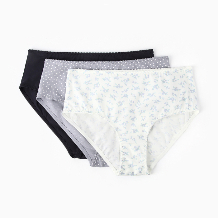 Набор женских трусов слипы (3шт), цвет цветочки на молочном, размер 50 (XL)