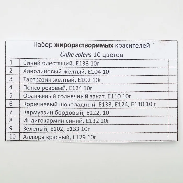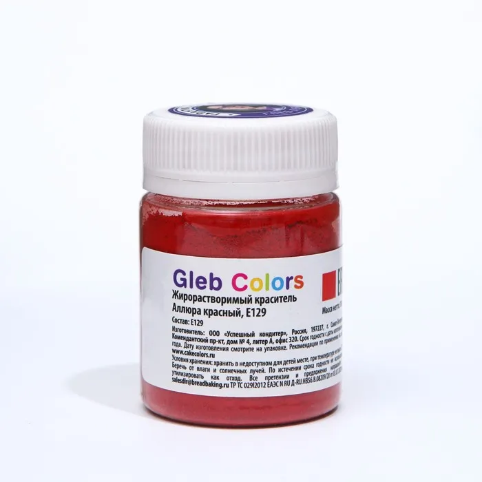 Описание: концентрированные красители жирорастворимые пищевые Gleb Colors предназначены для окрашивания шоколада, какао-масла, глазури, велюра, кремов и продуктов на жирной основе. С их помощью вы сможете создавать велюровые покрытия на тортах различных оттенков. Красители жирорастворимые Gleb Colors подходят для колорирования цветов и фигурок из мастики, а также для конфет ручной работы.Чтобы получить желаемый цвет красители можно смешивать между собой.Перед применением можно развести в какао-масле. Если вы используете их для кремов на жирной основе, то просто добавьте их в крем при взбивании. Цвет до замешивания может отличаться. Красители жирорастворимые Gleb Colors купить можно в нашем магазине, они упакованы в банки с широким горлом, что позволяет легко извлечь необходимое количество.Так как красители концентрированные, вам хватит небольшого количества для окрашивания изделия. Это позволит снизить себестоимость вашей продукции.Они не обладают запахом и вкусом, поэтому не повлияют на аромат и вкусовые качества вашего изделия.