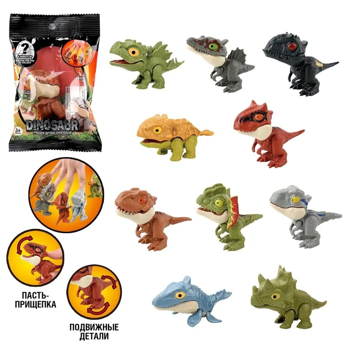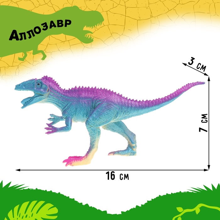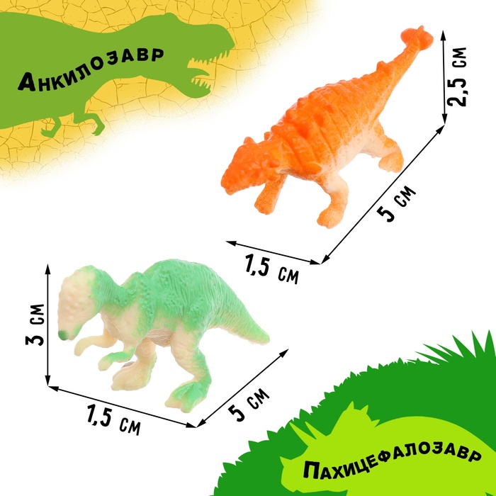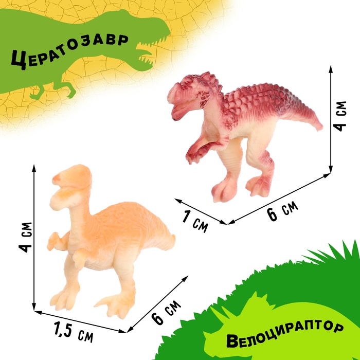 - 14 фигурок динозавров разных видов и размеров, выполненных с яркой раскраской.