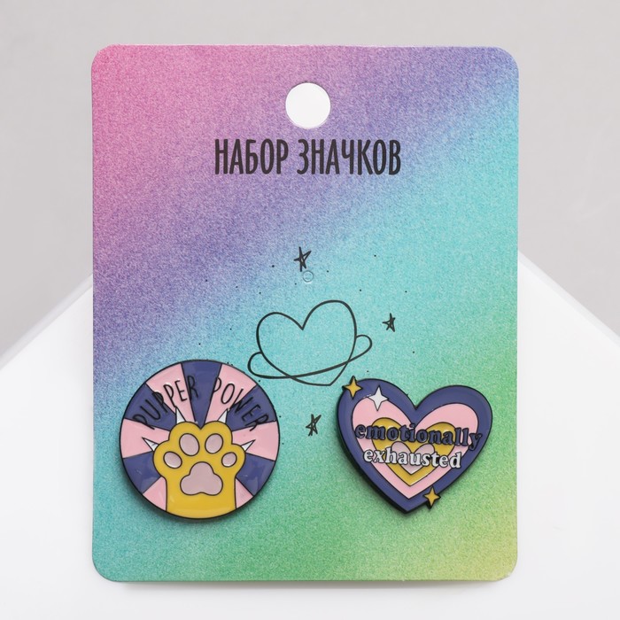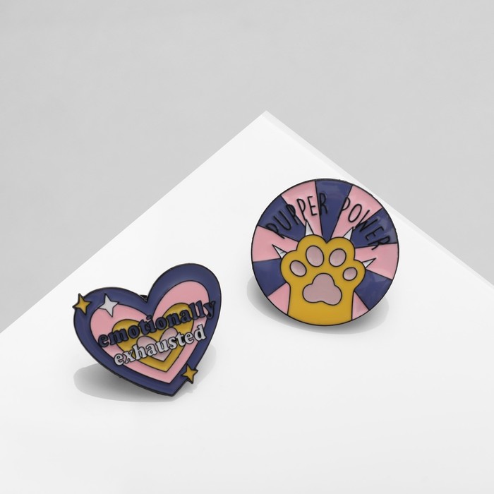 Набор значков (2 шт.) «Эмоции», цветной в чёрном металле — Характеристики