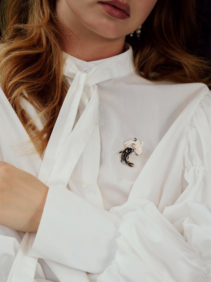 - Яркий дизайн: карпы, символизирующие удачу и процветание, привносят в ваш образ нотки восточной мудрости и красоты.