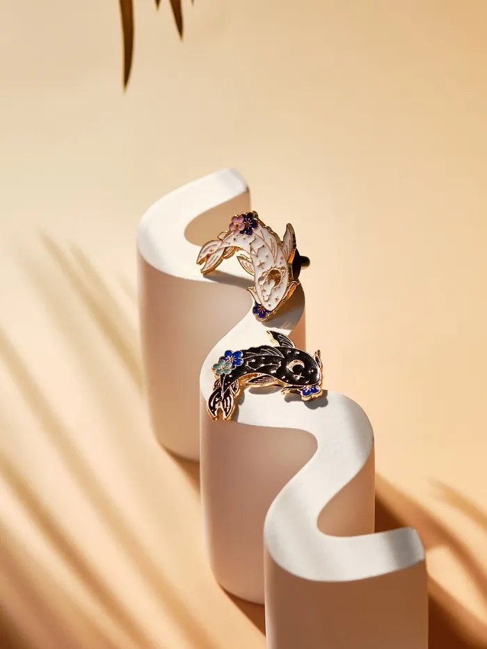Погрузитесь в атмосферу восточной эстетики с набором значков, который вдохновлен изяществом японской культуры. Эти два великолепных значка с изображением карпов, выполненные в ярких цветах и золотой фурнитуре, станут настоящим украшением для каждой женщины, ценящей стиль и оригинальность.