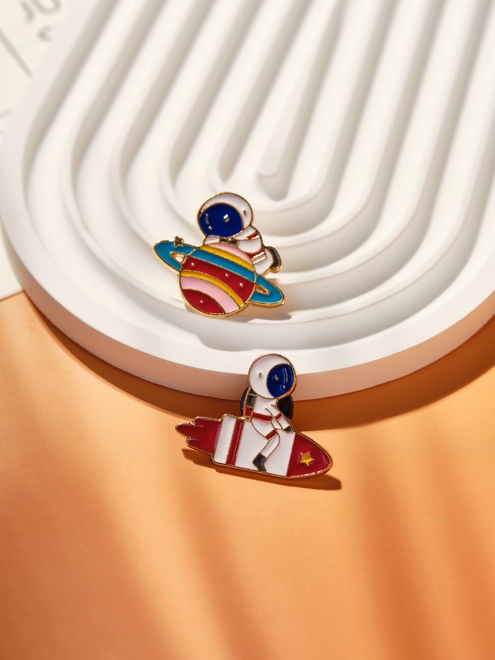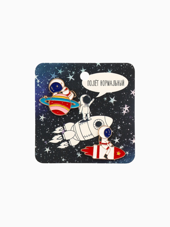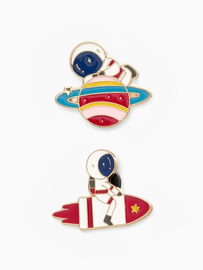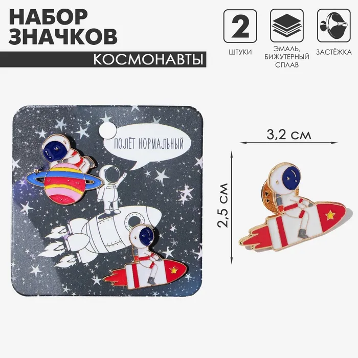 Набор значков (2 шт.) «Космонавты», цветной в золоте — Характеристики