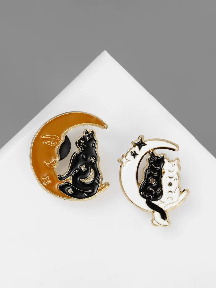 Набор из двух изящных значков с изображением котов на Луне — это сочетание утончённости и игривого настроения в одном аксессуаре. Выполненные из металла с качественной эмалью и украшенные золотистой фурнитурой, эти значки длиной 3 см станут стильным дополнением к любому образу, подчеркивая индивидуальность и любовь к необычным деталям.
