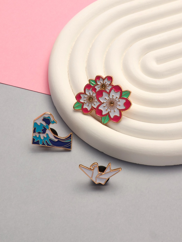 Погрузитесь в атмосферу нежности и красоты с набором значков «Япония», который включает в себя три очаровательных значка с изображением сакуры и журавлика! Эти изысканные броши, выполненные в ярких цветах и дополненные золотой фурнитурой, станут идеальным аксессуаром для женщин, которые ценят стиль и оригинальность.