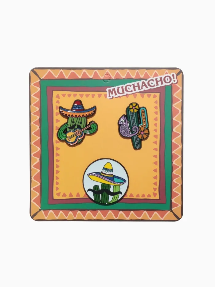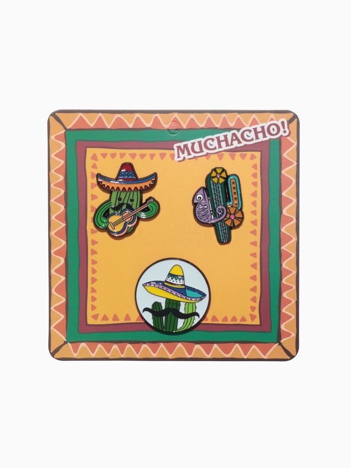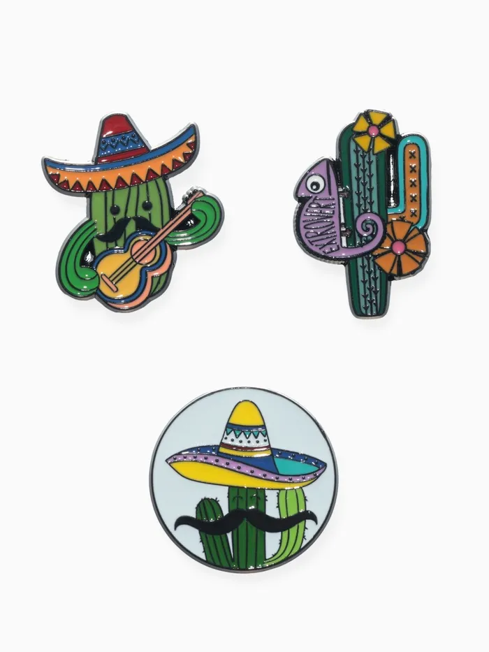 Три ярких кактуса в компактном наборе — необычное решение для тех, кто ценит стильные и оригинальные аксессуары. Каждый значок длиной 3 см выполнен из прочного металла с чёрной фурнитурой и украшен насыщенными зелёными эмалевыми вставками, создающими эффект живой текстуры растения.