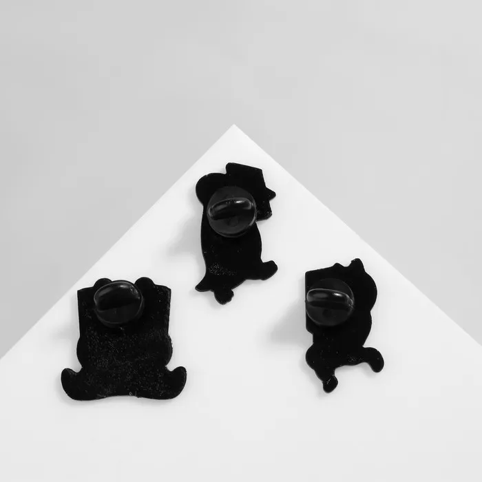 Набор значков (3 шт.) «Комиксы» с животными, цвет чёрно-белый в чёрном металле — Характеристики