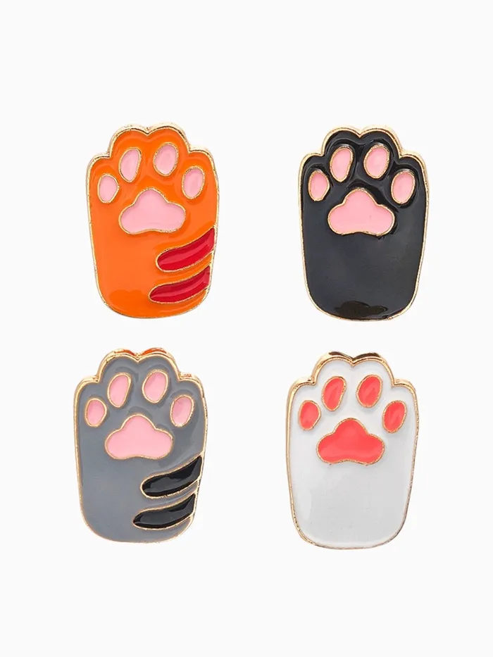 Набор значков (4 шт.) «Лапки» кошачьи, цветной в золоте — Характеристики