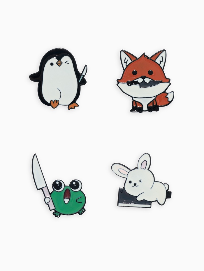 - Уникальный дизайн: значки с изображениями пингвина, лисы, зайца и лягушки привнесут в ваш образ нотки веселья и креативности.
