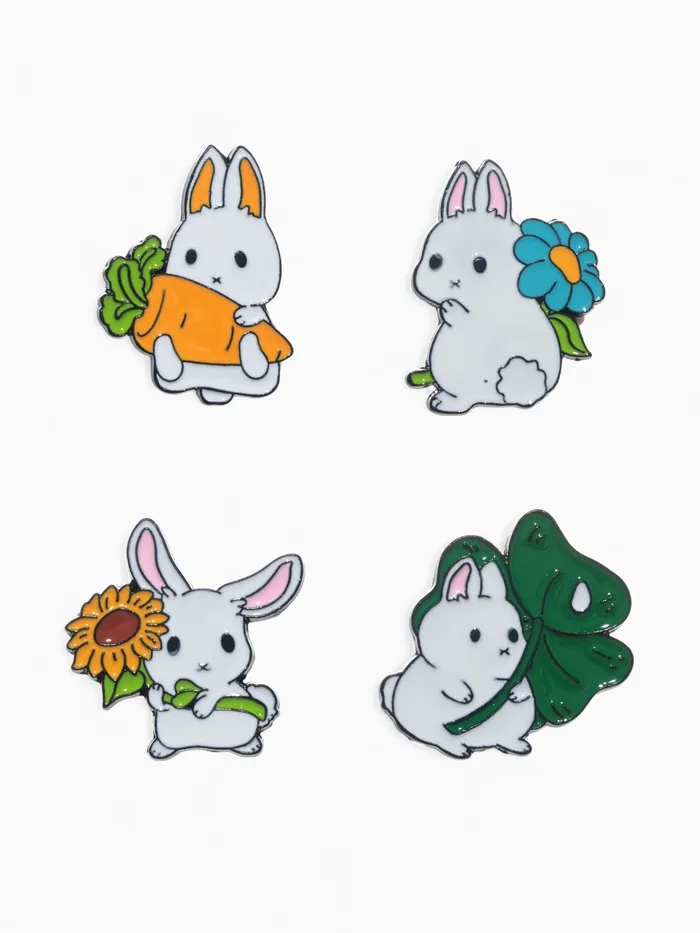 Каждый значок длиной 3 см представляет собой очаровательное изображение зайца, окруженного цветами и растениями, что делает их не только стильными, но и милыми. Эти значки отлично подойдут как для повседневного ношения, так и для особых случаев, добавляя нотку игривости и оригинальности в любой наряд.