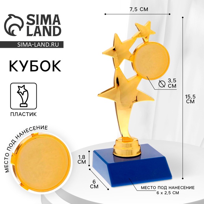 Наградная фигура детская, под нанесение, кубок, пластик, золото, 12.5 см — Характеристики