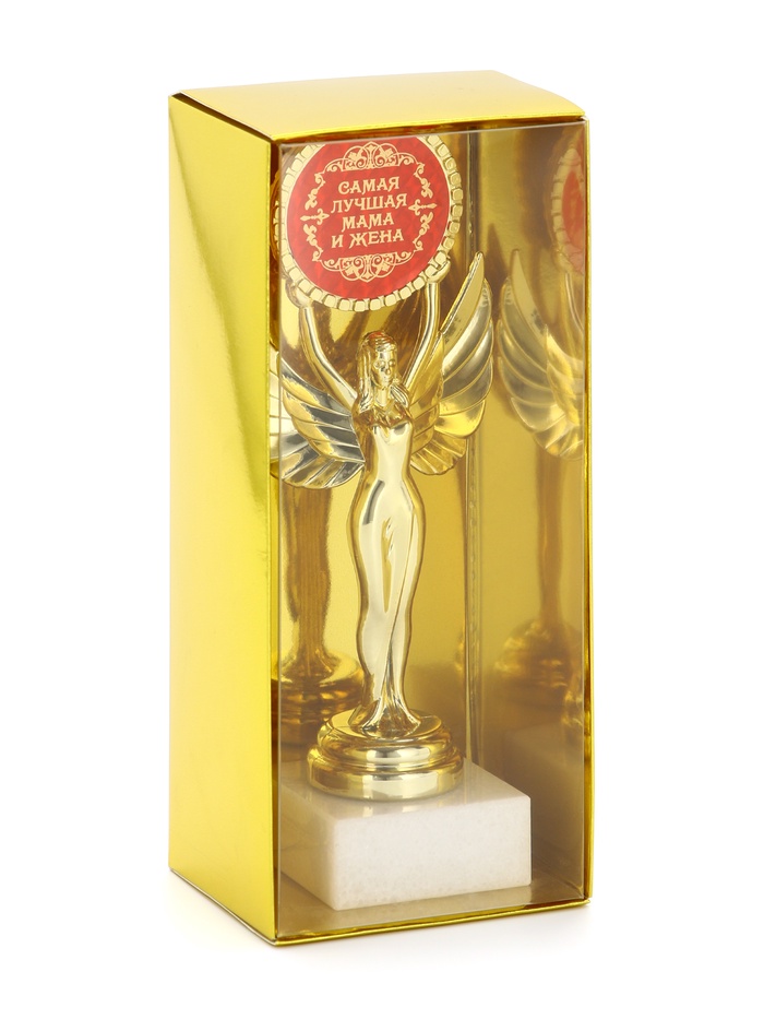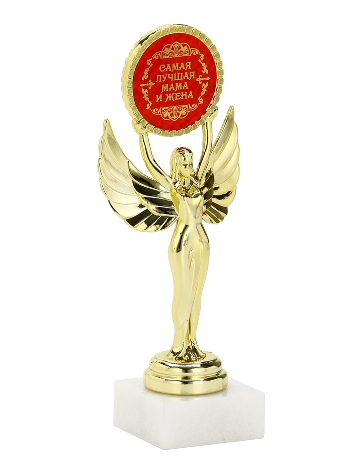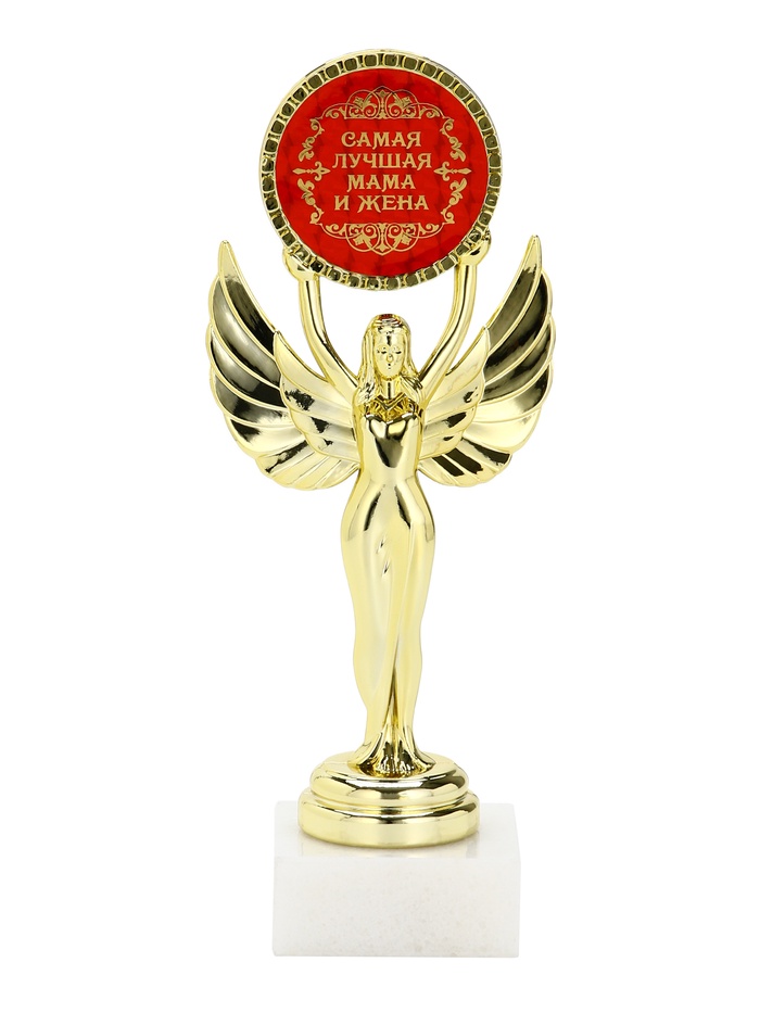 Наградная фигура Ника с вкладышем «Самая лучшая мама и жена», пластик, подставка камень, золото, 18 см — Характеристики