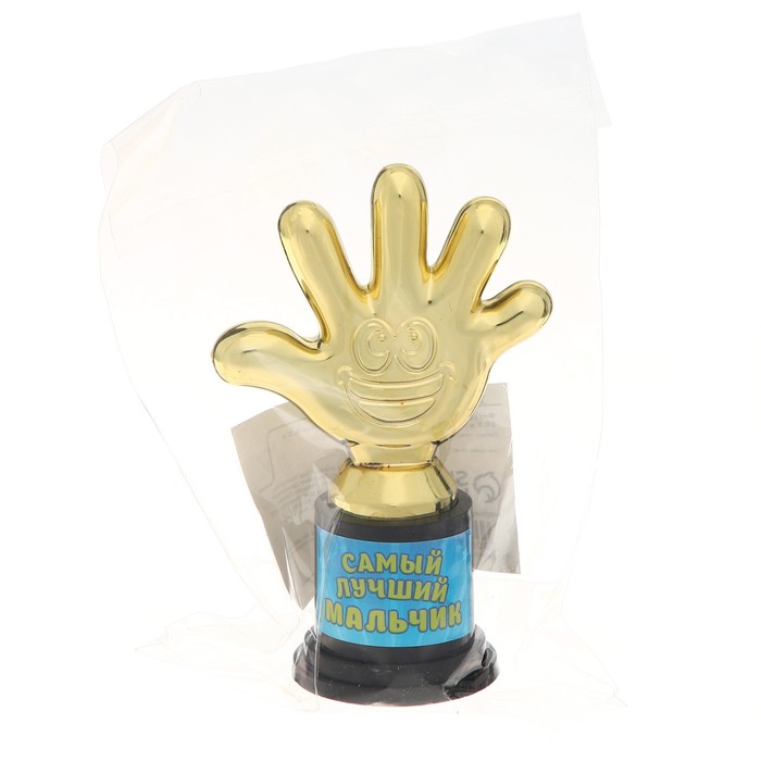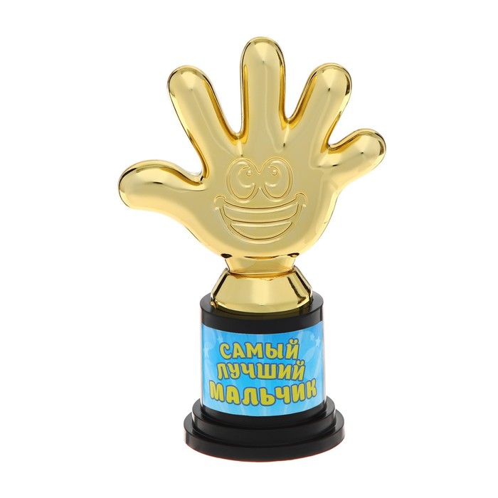 Наградная фигура «Самый лучший мальчик», пятерня, кубок, пластик, золото, 6,5 х 10,5 х 4 см. — Характеристики