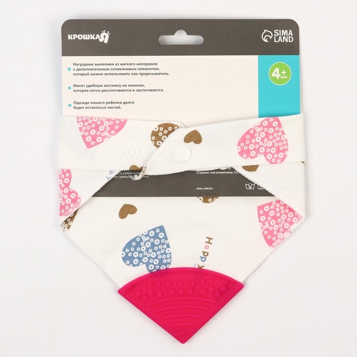 Нагрудник-бандана/слюнявчик для кормления Крошка Я, непромокаемый, с прорезывателем, на кнопке, розовый, МИКС — Характеристики