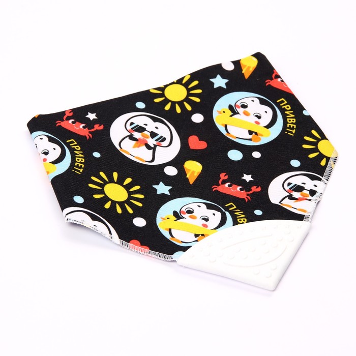 Нагрудник-бандана/слюнявчик для кормления M&B «ТРЕНД, Прингвин» непромокаемый с прорезывателем, на кнопке — Характеристики