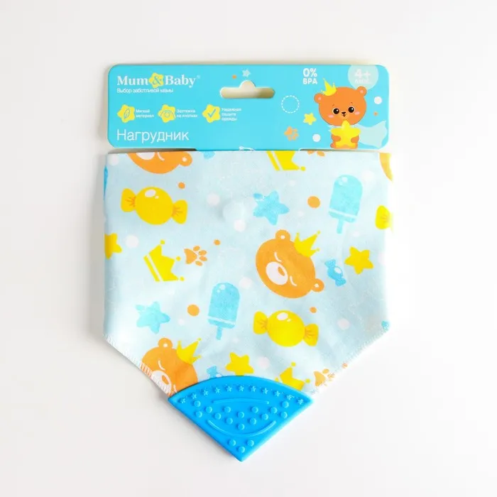 Нагрудник-бандана/слюнявчик для кормления «Мишка Принц» непромокаемый с прорезывателем, на кнопке — Характеристики
