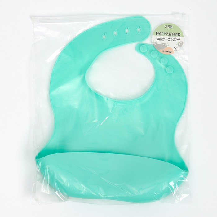 Нагрудник для кормления детский Крошка Я, силиконовый, 23х4х29, бирюзовый — Характеристики