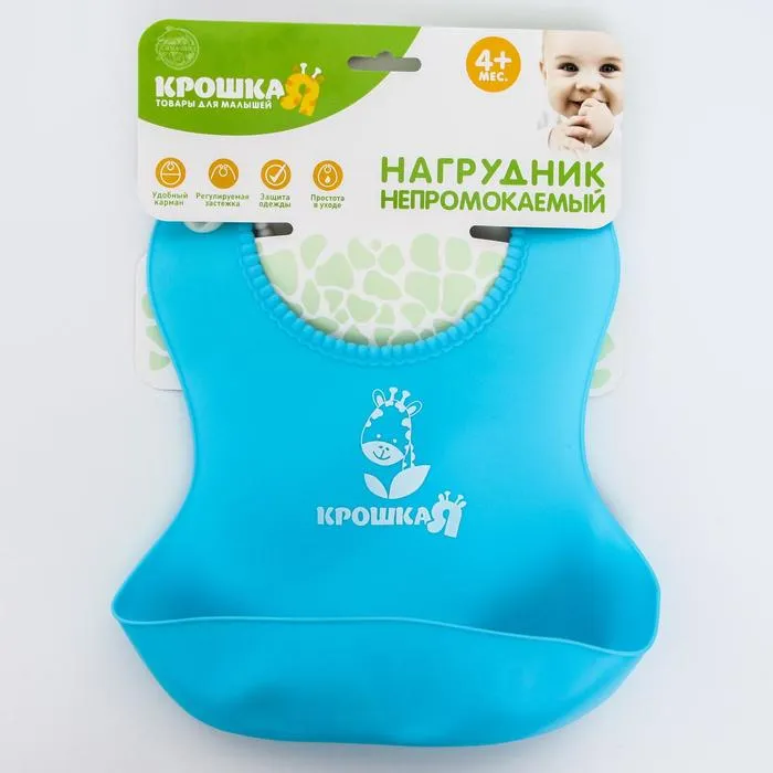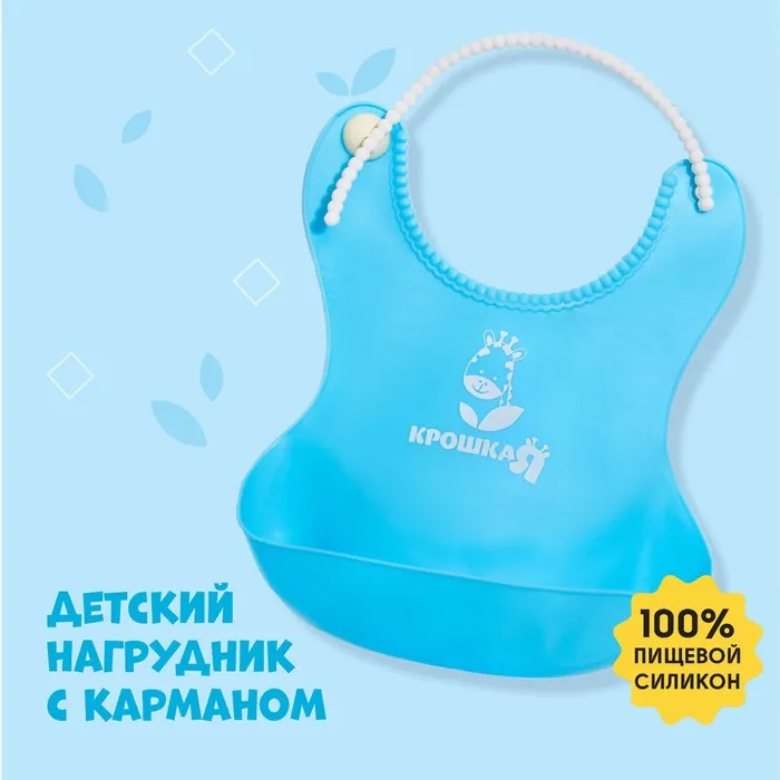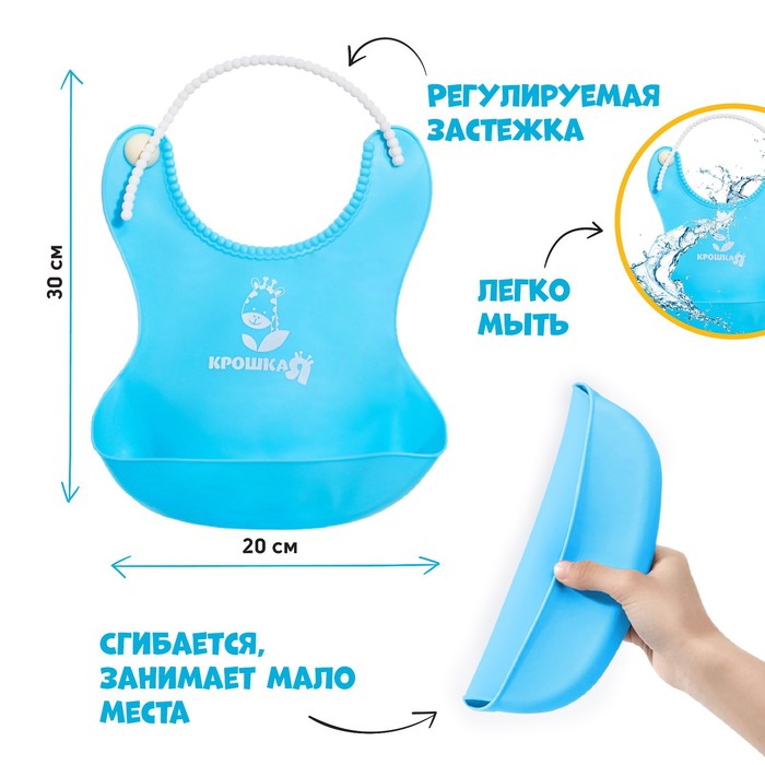 Нагрудник для кормления детский, силиконовый, с карманом, голубой — Характеристики