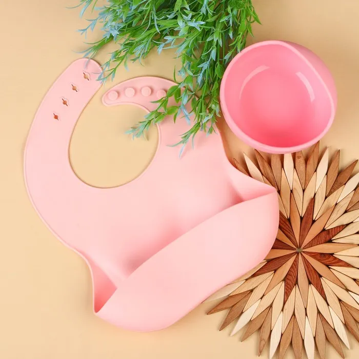 Нагрудник для кормления детский, силиконовый, с карманом, розовый