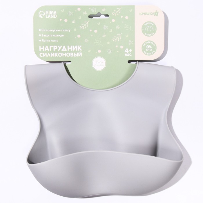 Нагрудник для кормления детский, силиконовый, с карманом, серый