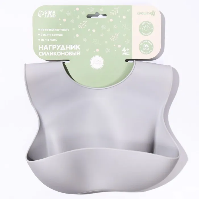 Товар изготовлен из силикона, не содержащего токсичных веществ. После использования мойте тёплой мыльной водой. Нагрудник рекомендован для детей старше 4 месяцев.
