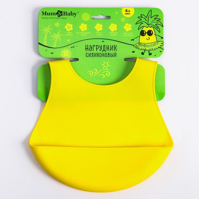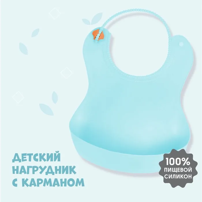 Нагрудник для кормления детский, силиконовый, с карманом, цвет голубой — Характеристики