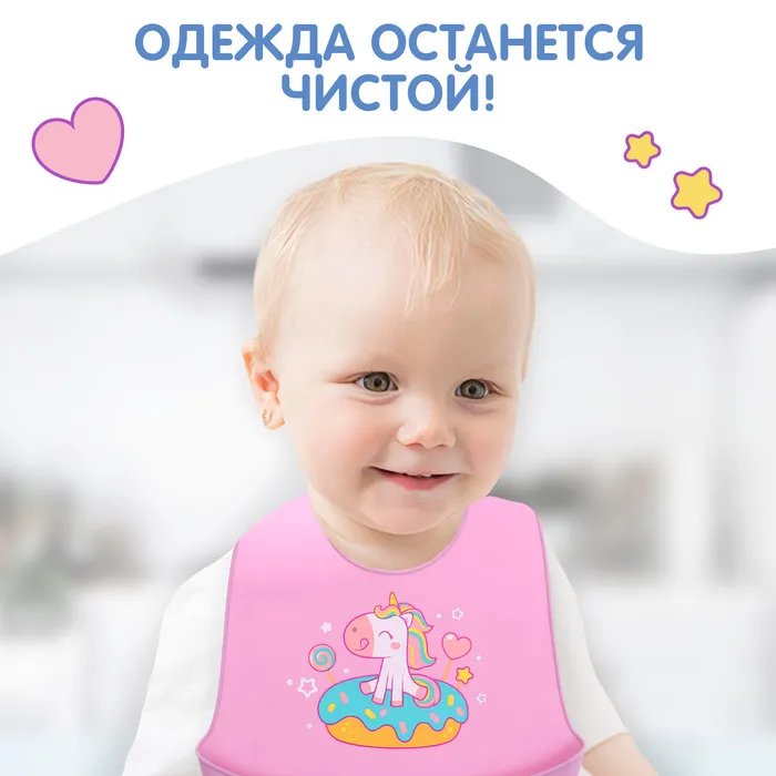 Мягкий силиконовый нагрудник — это надёжный защитник при кормлении вашего малыша. Наличие кармашка не даст еде упасть на стол или на пол, а также убережёт одежду малыша от загрязнений и пятен.