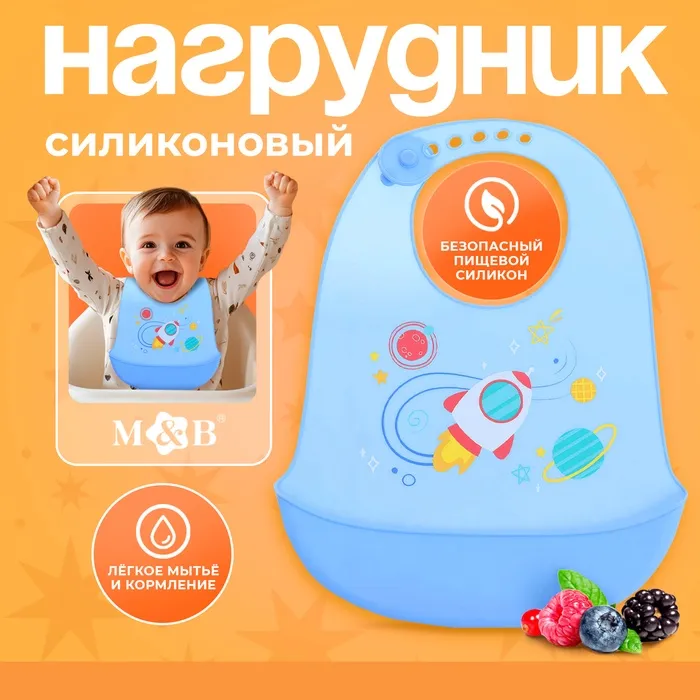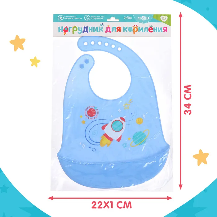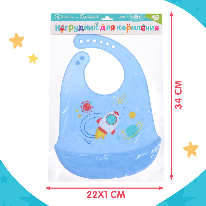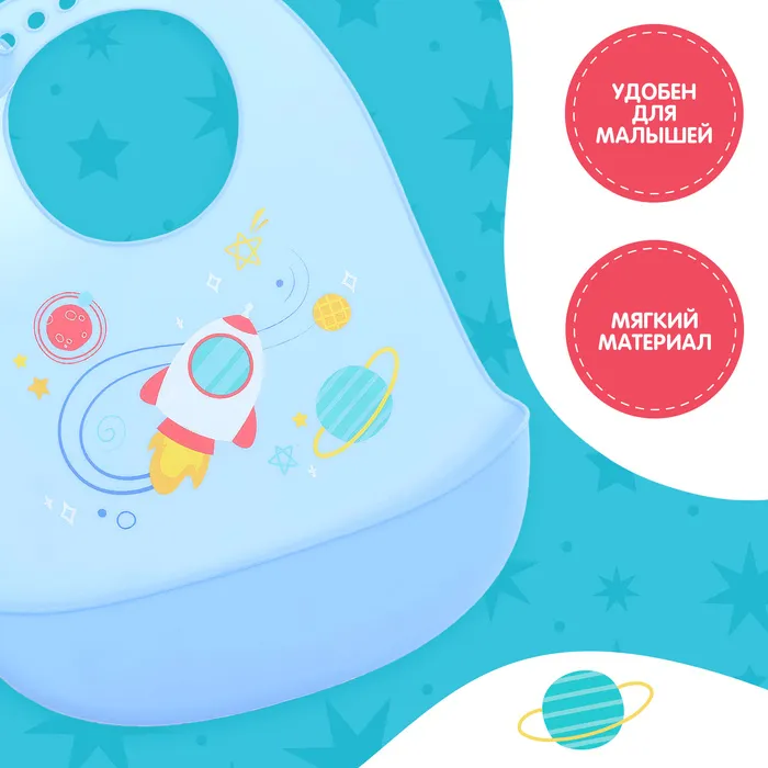 Нагрудник для кормления «Космос», силиконовый, с карманом, голубой — Характеристики