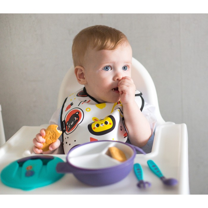 Нагрудник для кормления Крошка Я «Малыши» Г. Доман непромокаемый на липучке, с карманом — Характеристики