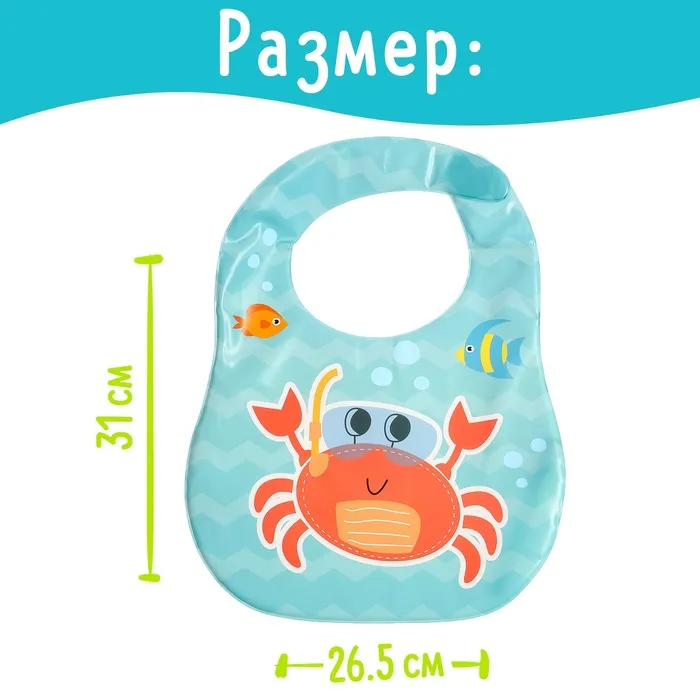 Нагрудник надёжно защищает одежду ребёнка от пятен, сохраняя её чистой и сухой. Его легко брать с собой в поездки, прогулки или кафе, благодаря компактности и простоте ухода. Материал позволяет протирать нагрудник влажной салфеткой или мыть под краном.