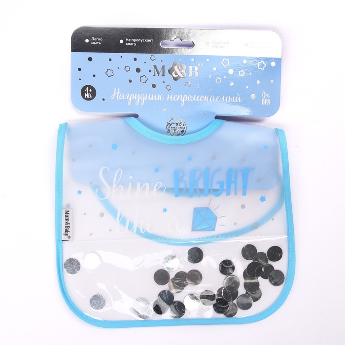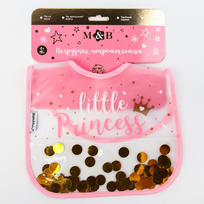 Нагрудник для кормления M&B «Little» непромокаемый на липучке, внутри с конфетти, виды МИКС — Характеристики