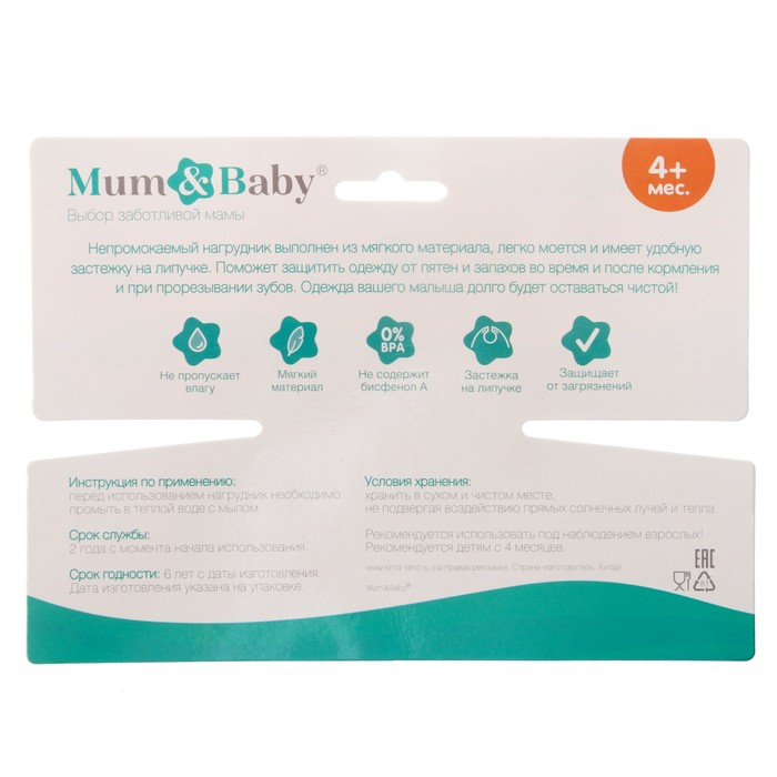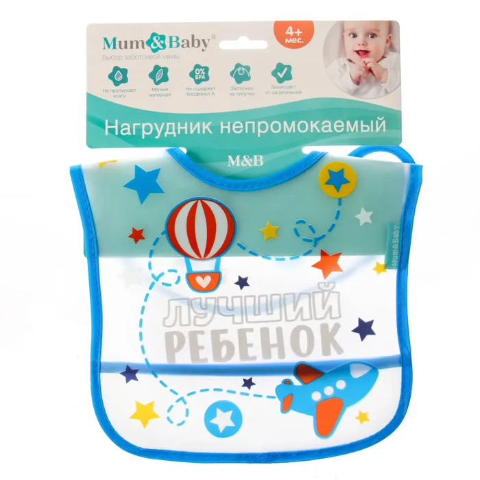 Нагрудник для кормления M&B «Лучший ребенок» непромокаемый на липучке, с карманом — Характеристики
