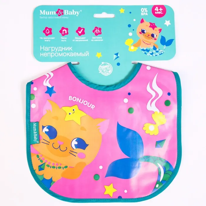 Нагрудник не промокает и качественно защищает, поэтому одежда малыша не испачкается в процессе кормления.