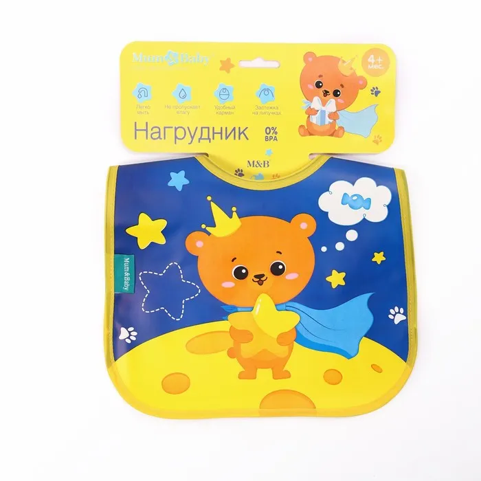 Нагрудник для кормления M&B «ТРЕНД. Персонажи» непромокаемый на липучке, с карманом, МИКС — Характеристики
