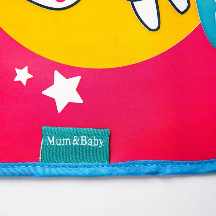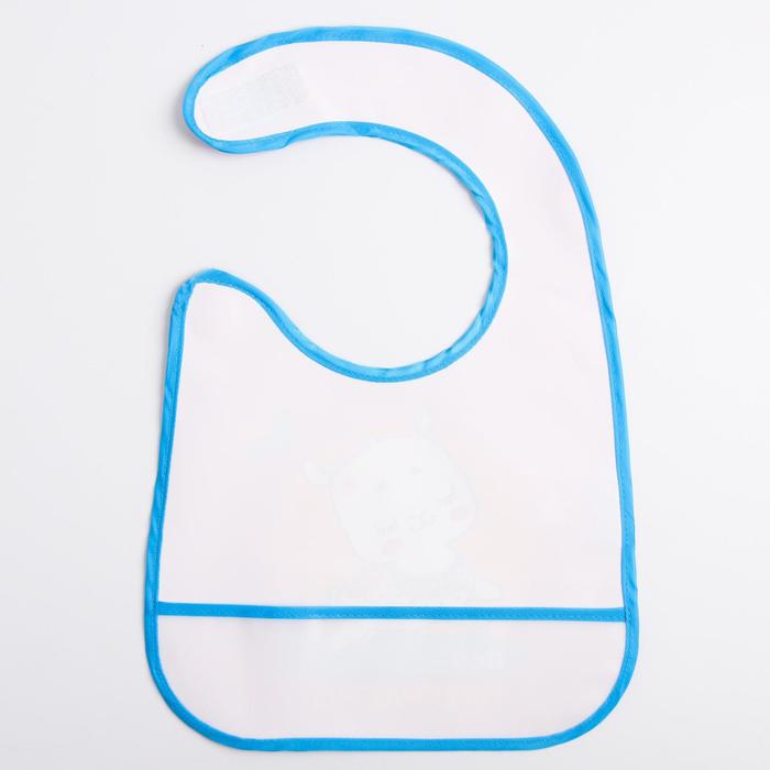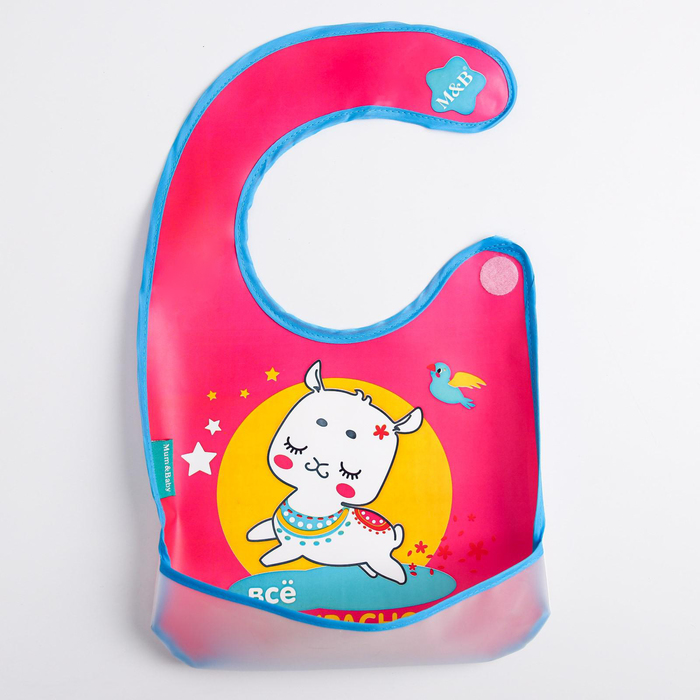 Нагрудник не промокает и качественно защищает, поэтому одежда малыша не испачкается в процессе кормления. У слюнявчика есть специальный кормашек, который выворачивается на лицевую сторону на время приема пищи, в него попадают все крошки: чистым останется не только сам ребёнок, но и место, где он кушает.