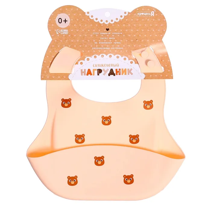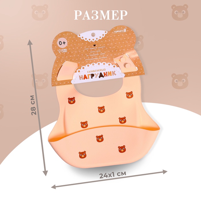 Нагрудник для кормления «Мишка», силиконовый, с карманом, бежевый — Характеристики