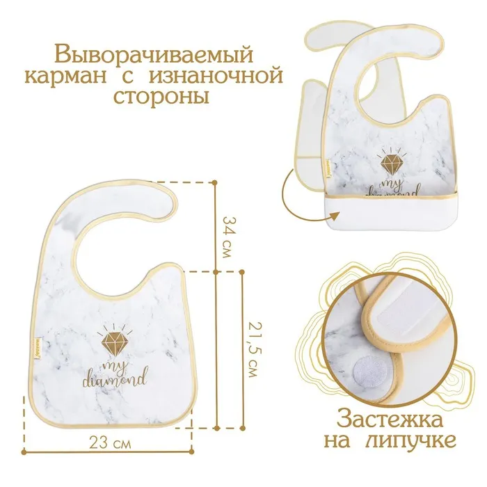 Нагрудник для кормления «My diamond» непромокаемый на липучке, с карманом — Характеристики